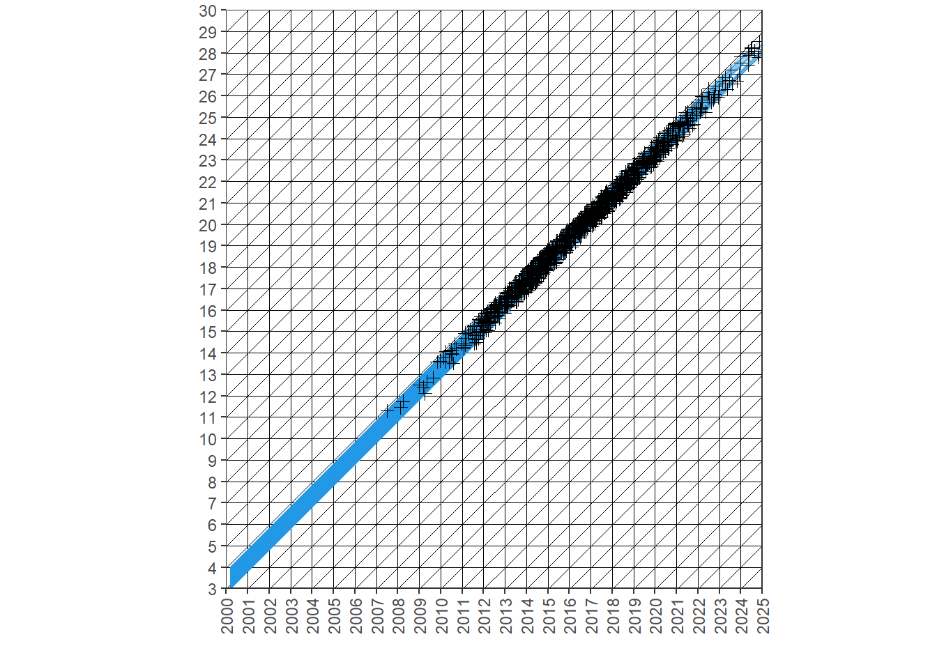 ¿Por qué las líneas no empiezan justo en 2000? Estimemos algunos parámetros básicos: